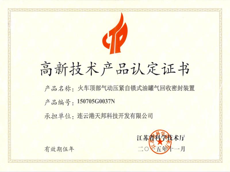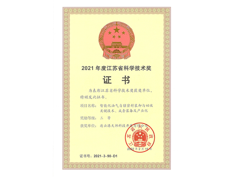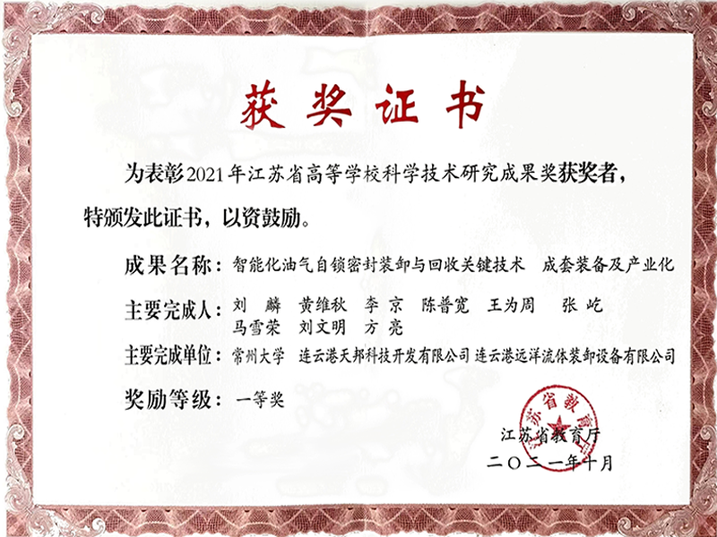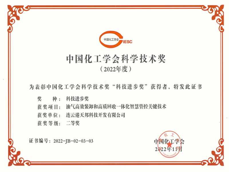 2011年: 成立連云港市(天邦)流體裝卸臂工程技術研究中心、科技創新優秀單位