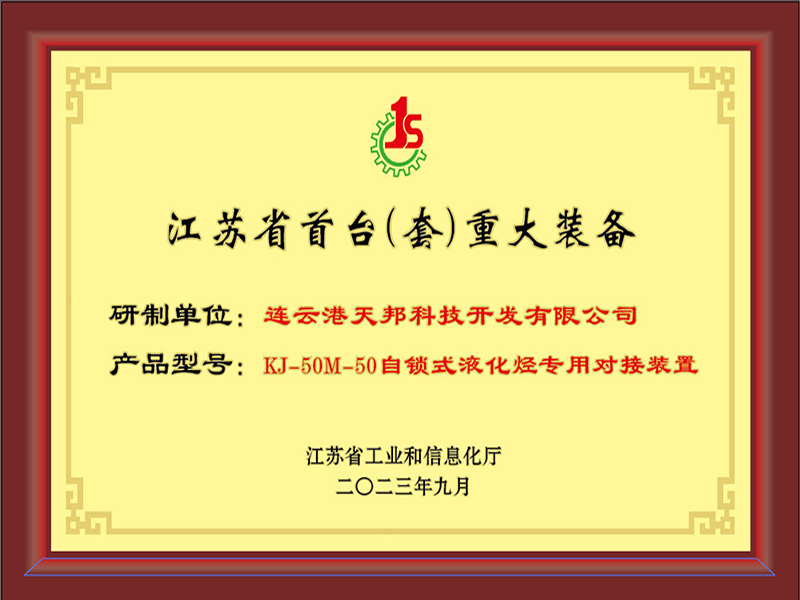 2023年:被認定為國家級專精特新小巨人企業、江蘇省服務型制造示范企業。“自鎖式液化烴裝卸專用接頭”獲得江蘇省首臺套重大裝備認定;