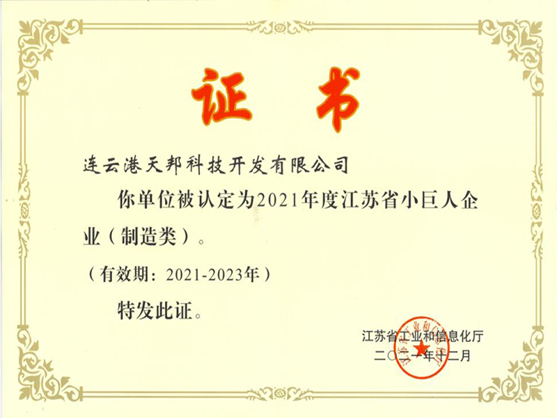 2021年:被認定為江蘇省專精特新小巨人企業;