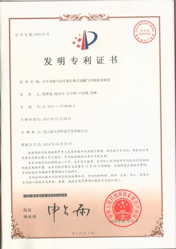 連云港天邦科技開發(fā)有限公司,致力于石油化工儲運(yùn)裝卸設(shè)備研發(fā)、推廣及產(chǎn)業(yè)化生產(chǎn),公司凝煉企業(yè)及整個行業(yè)技術(shù)需求,對系列儲運(yùn)裝卸設(shè)備控制系統(tǒng)及關(guān)鍵技術(shù)進(jìn)行研究,研發(fā)出鎖緊式密封裝置、自鎖式液化烴裝卸專用接頭等原創(chuàng)型產(chǎn)品。